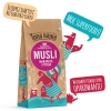 Jeśli wolisz bardziej orzeźwiający smak, postaw na Musli Marakuja i Pitaja. Myślisz, że wszystko nam się pomieszało i dlatego w środku zimy proponujemy Ci garść tropików na śniadanie? Naszą słoneczną kompozycją musli wprowadzimy szczyptę tropikalnego szaleństwa. W tej odsłonie poznaj fioletową pitaję zwaną inaczej truskawkową gruszką z owocem marakuji. Jesteśmy dumni z tego połączenia! Nasze musli dostarczy Ci potrzebnego błonnika, a mangan przyczyni się do utrzymania kości w dobrym stanie. Na zdrowie!