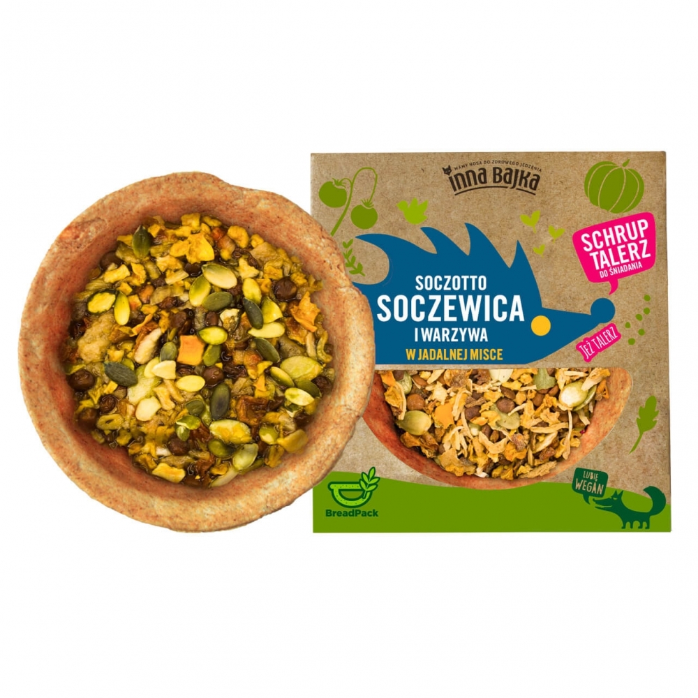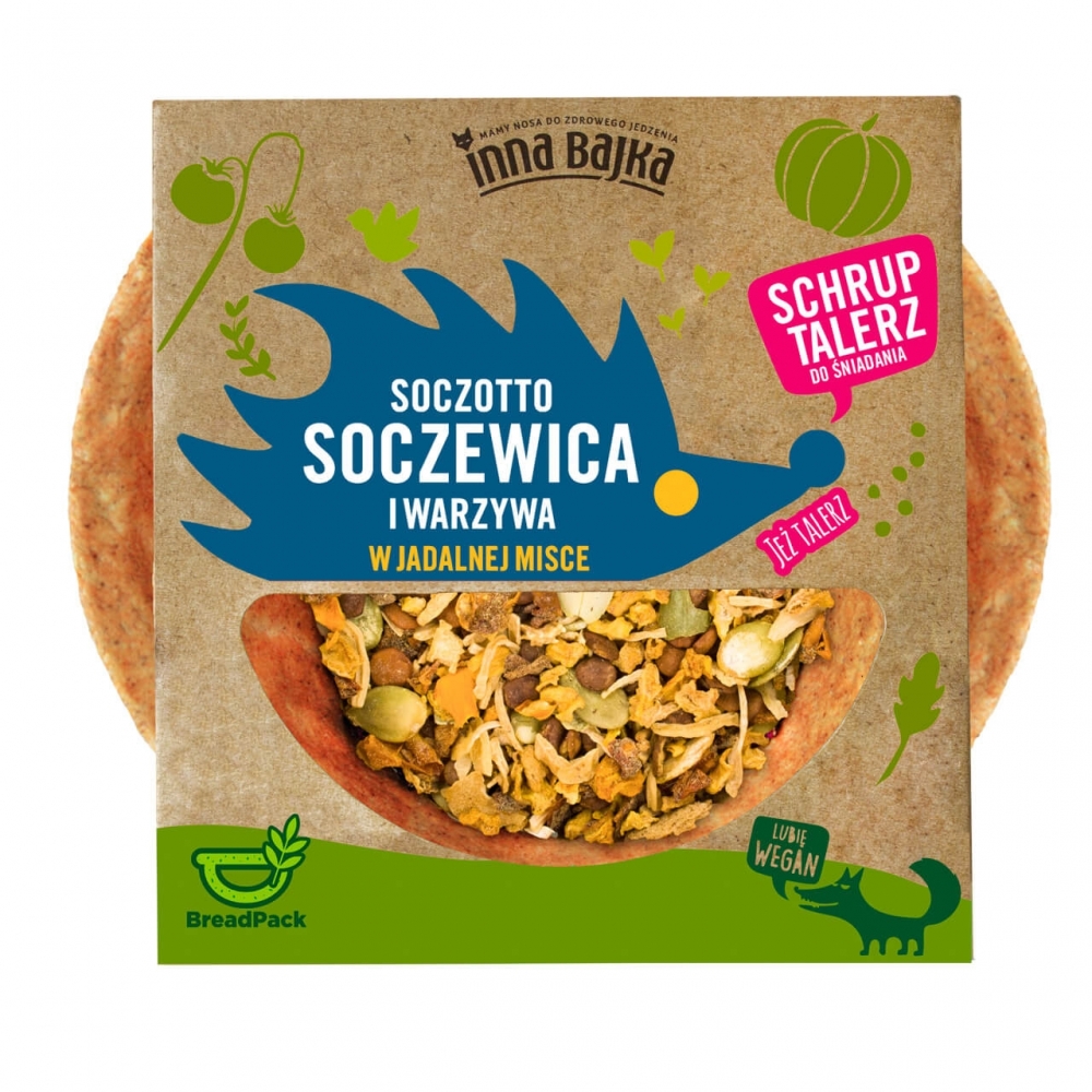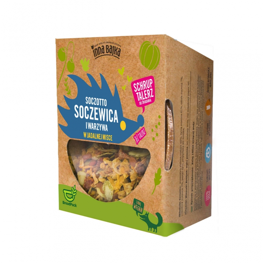 Kto powiedział, że pełnowartościowy i smaczny, roślinny obiad w 5 minut, jest trudny do przygotowania? Ktoś, kto z pewnością nie spróbował Soczotto Soczewica i Warzywa – obiadu opartego na bogatym bukiecie suszonych warzyw i soczewicy, zapakowanych do chrupiącego, chlebowego talerzyka Breadpak. Zalej gorącą wodą, wymieszaj i po 5 minutach ciesz się posiłkiem o imbirowym posmaku. Schrup talerz do obiadu!