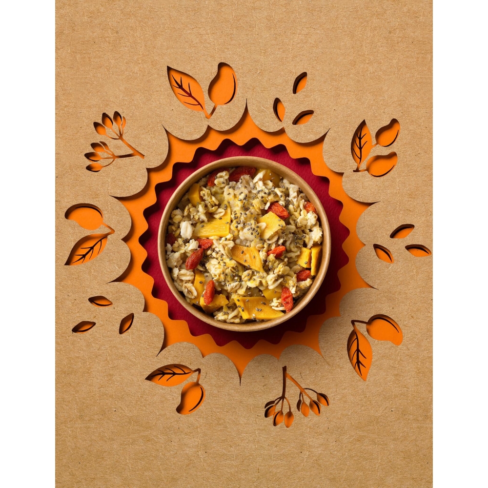 Co wchodzi w skład Owsianki Mango i Jagody Goji z Innej Bajki? Poza pełnymi błonnika płatkami owsianymi, m.in. suszone owoce mango, jagody goji oraz kurkuma i nasiona chia. Zawarte w nich mikro i makroelementy wzmocnią Twój wzrok i odporność. Smaczne i funkcjonale śniadanie w 5 minut!