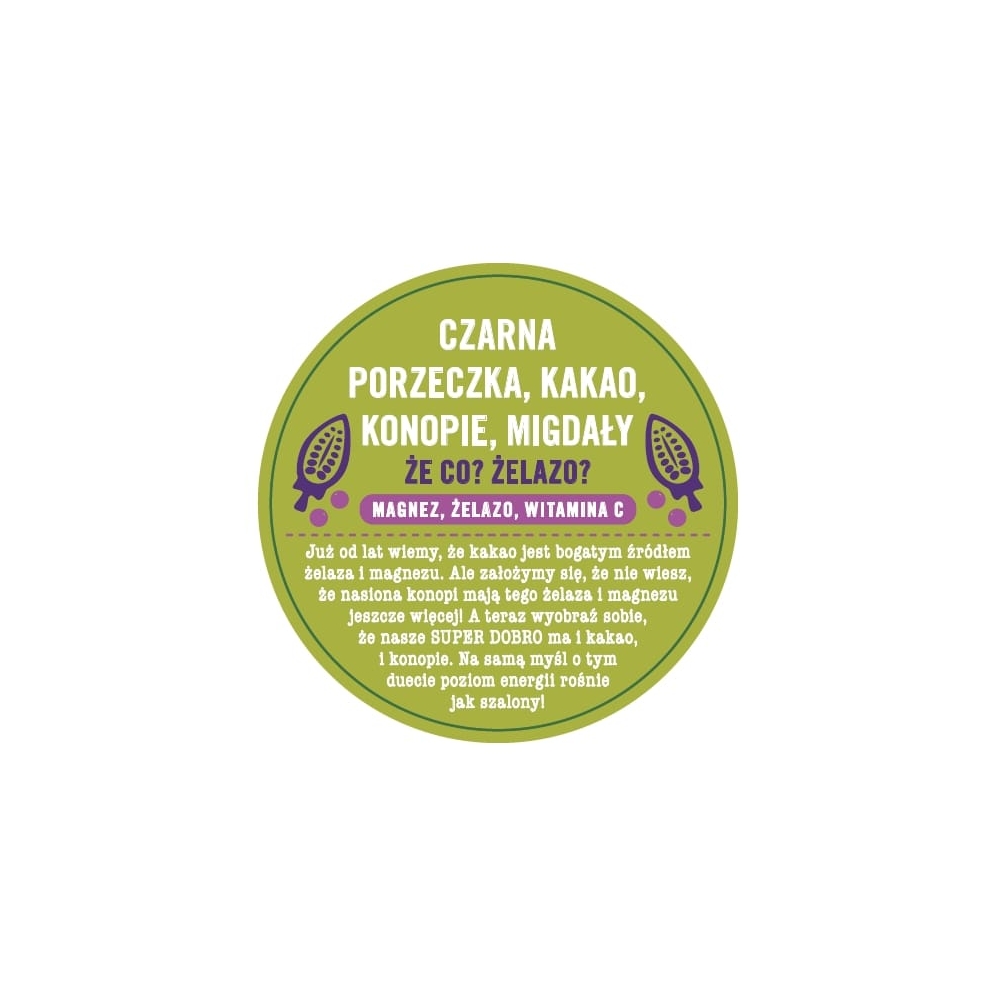 Produkty SUPER DOBRO zawierają jeden wybrany przez nas produkt, charakteryzujący się wyjątkowymi właściwościami, na przykład młody jęczmień, nasiona chia, jagody goji i wiele innych. Możesz użyć ich we własnych przepisach, wzbogacić swój jogurt lub napój, a niektóre – zjeść prosto z tuby. Najwyższą jakość gwarantuje nasz Dziki Dostawca.